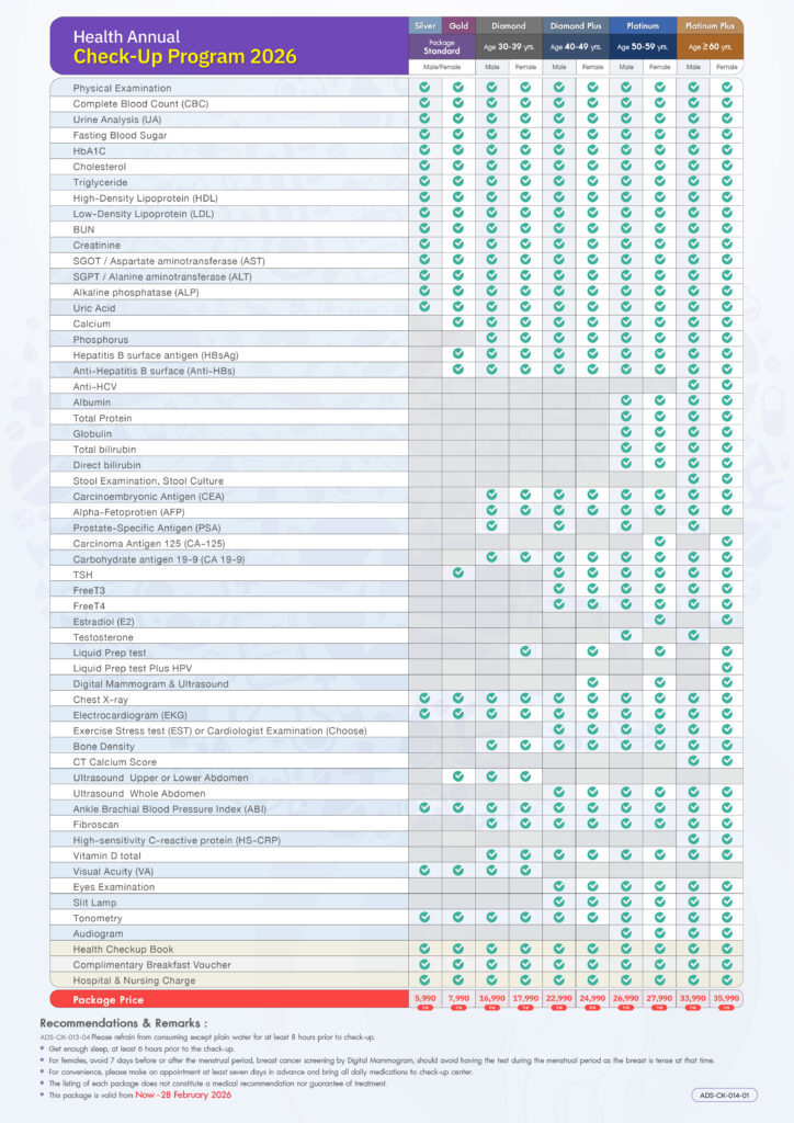Health Check-up Program for Teachers แชร์ Note : This price includes the doctor's fees and hospital service fees. Contract The Health Checkup Department,2nd floor, Kasemrad International Hospital, Call 02-594-0020-65 ext. 1276,1277 ติดตามเรา แพ็กเกจแนะนำ บทความสุขภาพอื่นๆ VDO ความรู้สุขภาพ