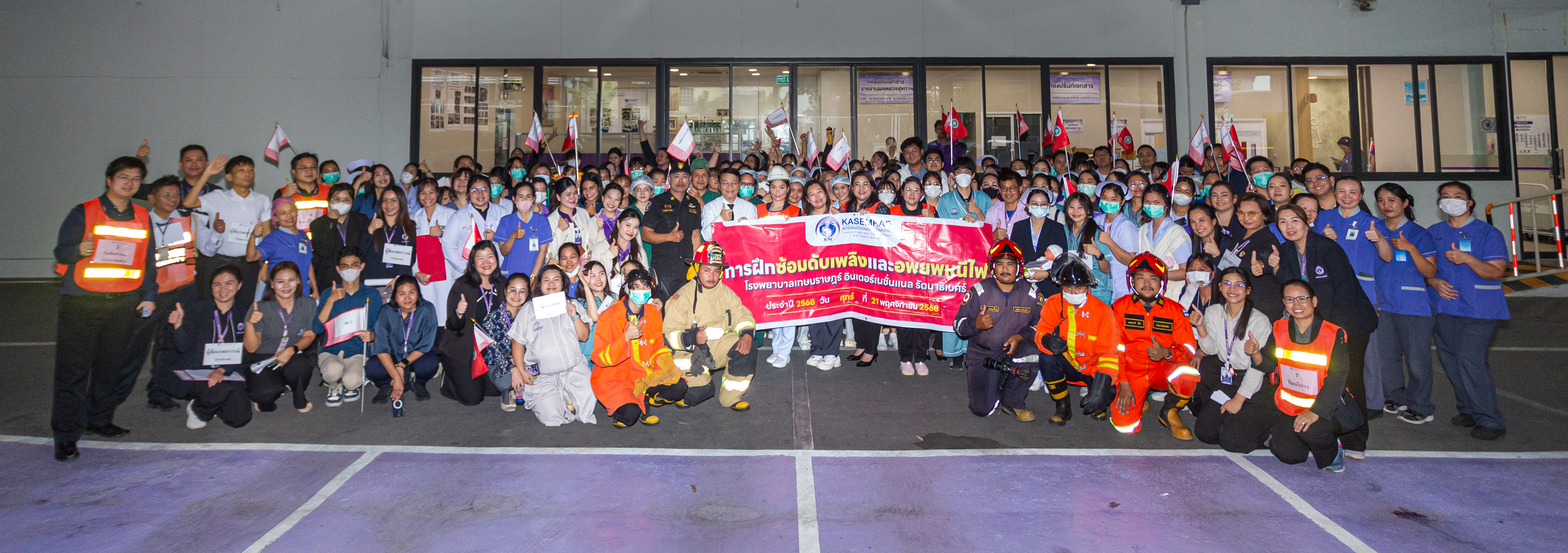 เมื่อวันศุกร์ที่ 21 ธันวาคม 2568 โรงพยาบาลเกษมราษฎร์ อินเตอร์เนชั่นแนล รัตนาธิเบศร์ ร่วมกับหน่วยงานป้องกันและบรรเทาสาธารณภัย องค์การบริหารส่วนตำบลเสาธงหิน จัดการฝึกอบรมให้ความรู้และสาธิตวิธีการป้องกันอัคคีภัย พร้อมทั้งแนวทางการอพยพหนีไฟอย่างถูกต้องและปลอดภัย