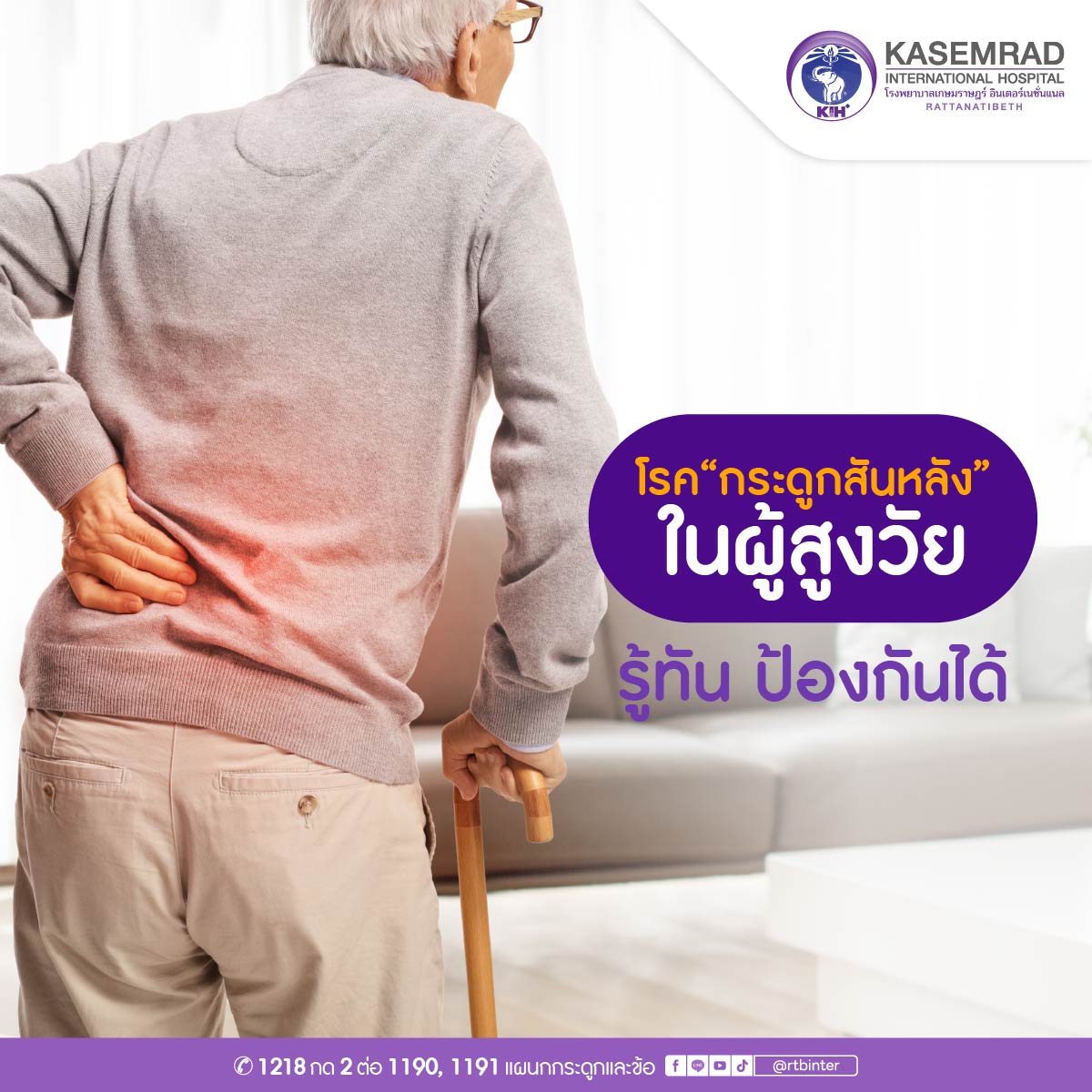 การดูแลสุขภาพกระดูกสันหลังในผู้สูงวัยเป็นเรื่องที่ต้องใส่ใจตั้งแต่เนิ่น ๆ ไม่เพียงเพื่อหลีกเลี่ยงโรคต่างๆ แต่ยังช่วยให้ใช้ชีวิตได้อย่างมีความสุขอีกด้วย เพราะ “สุขภาพที่ดีในวันนี้ คือการลงทุนเพื่อคุณภาพชีวิตที่ยั่งยืนในวันข้างหน้า”
